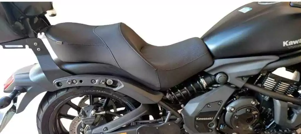 O banco inteiriço desenvolvido pela Gilberto Bancos para a Vulcan 650 foi projetado para entregar o equilíbrio perfeito entre conforto, segurança e acabamento premium.